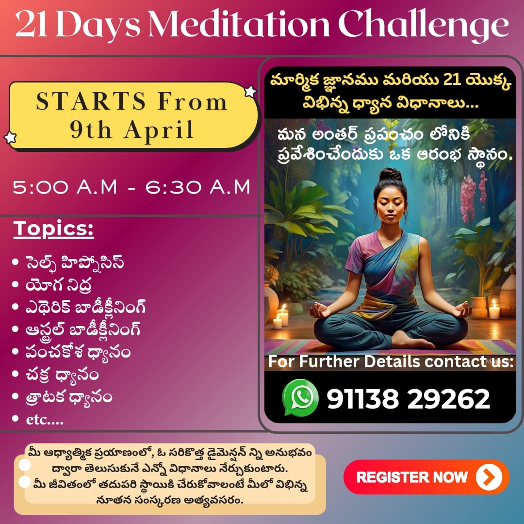 The 21 Day's Meditation Challenge is designed to help you cultivate a consistent meditation practice in just 21 days. Each day, you will be guided through different meditation techniques and practices to help you reduce stress, increase mindfulness, and promote overall well-being.
