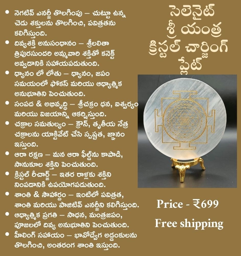How to Use" + "Spiritual Benefits" + "Regular Life Benefits"ఇక్కడ ఉన్న మా ప్రొడక్ట్స్/ లేదా క్రిస్టల్ ఎలా మీ సాధన సమయంలో లేదా వ్యక్తిగత జీవితం లో ఉపయోగించాలో తెలుసుకునేందుకు పైన ఉన్న "How to Use" + "Spiritual Benefits" + "Regular Life Benefits" లింక్ ని క్లిక్ చేయండి.
